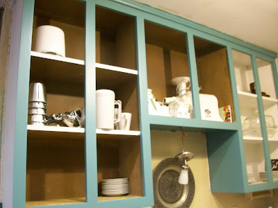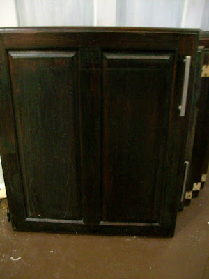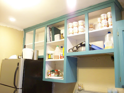 I really think I'll be glad I did. I'm not a huge fan of raised panel doors (and especially not the double raised panels that I had). Also, because I did have to replace one of the old cabinets with a new style cabinet, there wasn't a definitive place where the old ended and the new began. They were kind of mixed together.