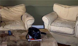 Here’s what they looked like before (sadly, I didn’t get a good pic of the ottoman, but it was a disaster):