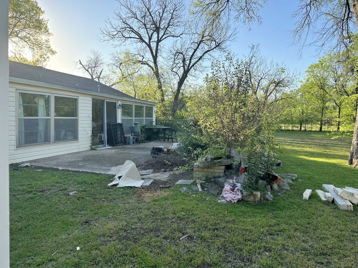 I’m also thinking about finally getting rid of this awkward fireplace planter combo. We’ve never used the fireplace, and I wouldn’t even feel safe using it with that tree so close to it. And the planters are falling apart and act as a weed factory right now. I’ve wanted to get rid of them for so long now, but I always thought I’d put off any projects back here until we get the addition built. But I’m tired of waiting.