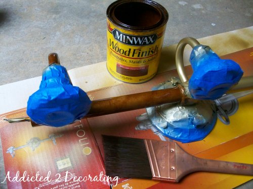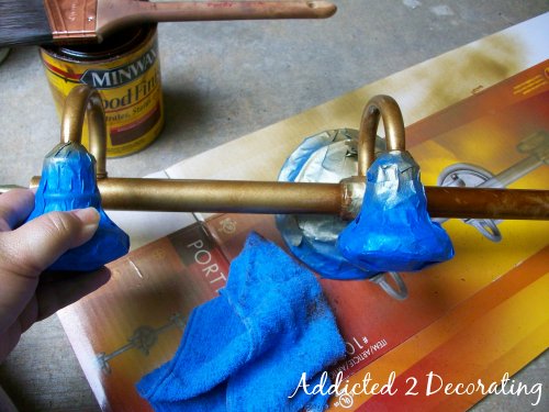 After that dried, I used a paint brush and applied stain to all of the gold areas.