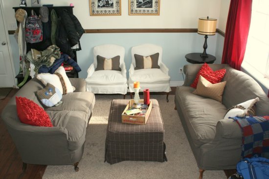 She recently made new slipcovers for her furniture. It looks like a completely different room!