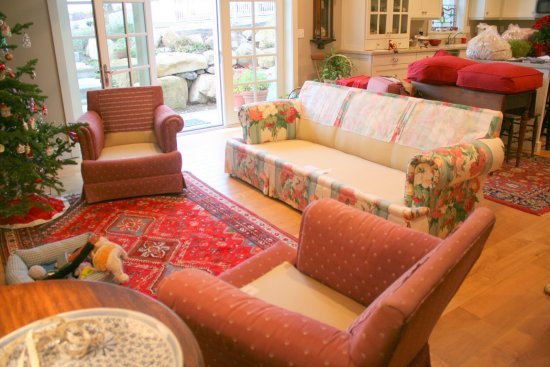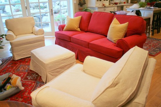 These are the first slipcovers she made for this furniture. What a difference slipcovers make!!!
