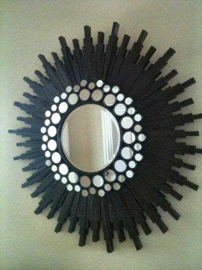 But speaking of new, I also wanted to share this sunburst mirror that a reader, Jennie, sent me yesterday. It’s a cell phone pic, but I think you’ll still be amazed. She used my wood shim sunburst mirror instructions, and then put her own spin on it.