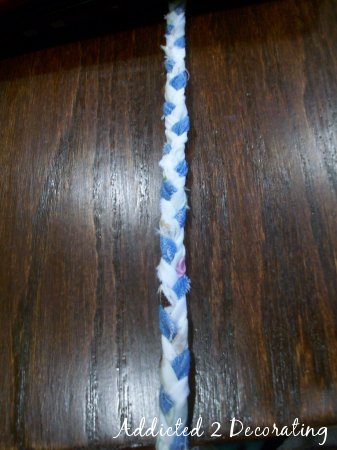 …and start braiding. Be sure that the braid isn’t too tight, or your coaster won’t lay flat. (I actually braided mine a little too tight.)