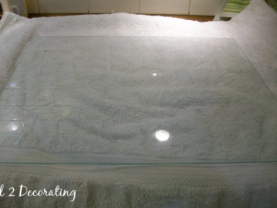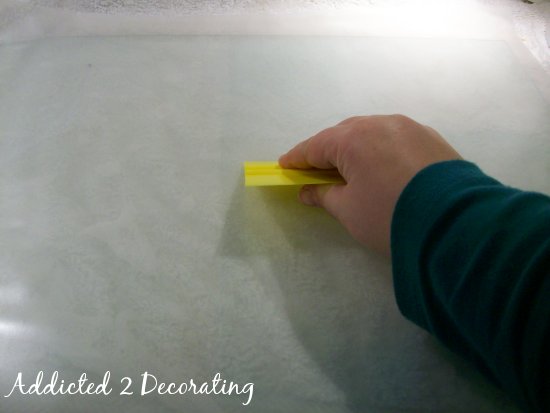 I bought mine at Home Depot, and they had a couple of brands, so they might have slightly different instructions. I definitely would NOT purchase the film just for this project. I actually purchased mine for a window, and then used the leftovers on this. If you don’t have a window to frost, or you can’t find friends to split the cost with you so you can all make message boards, then I would suggest using the more cost efficient glazed glass spray.