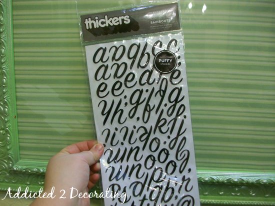 To finish it off, I added these puffy letter stickers that I found in the scrapbooking section of Michael’s.