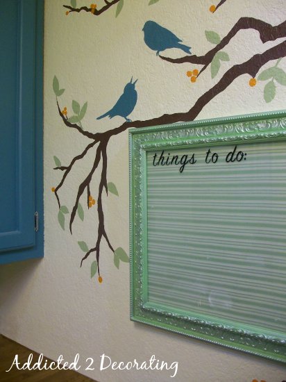 Aww, I loved the open frame. It was intriguing. I loved the way it framed out a simple part of the tree and drew your eye to the birds. I'm totally planning on doing something like that when I get to painting my bedroom. I'm kinda disappointed that you filled it in.