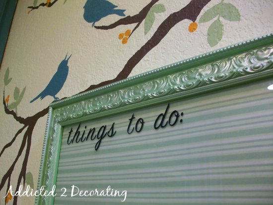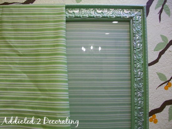 You can see here how the frosted window film really toned down the fabric, which I think makes it more appropriate for the backing of a message board.