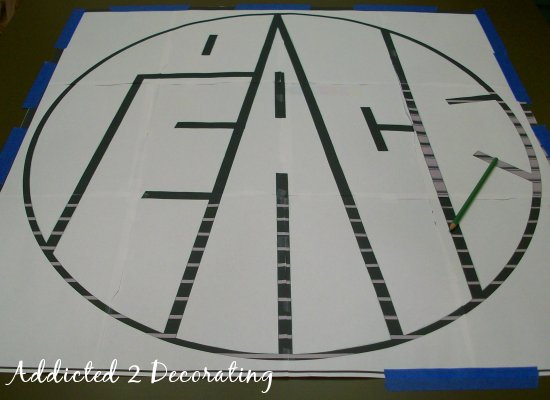 Next I printed out my design using my computer and printer. It printed on several sheets because of the size, so I had to tape those together. (Actually, my mom did this part for me. Thanks, Mom!!!)