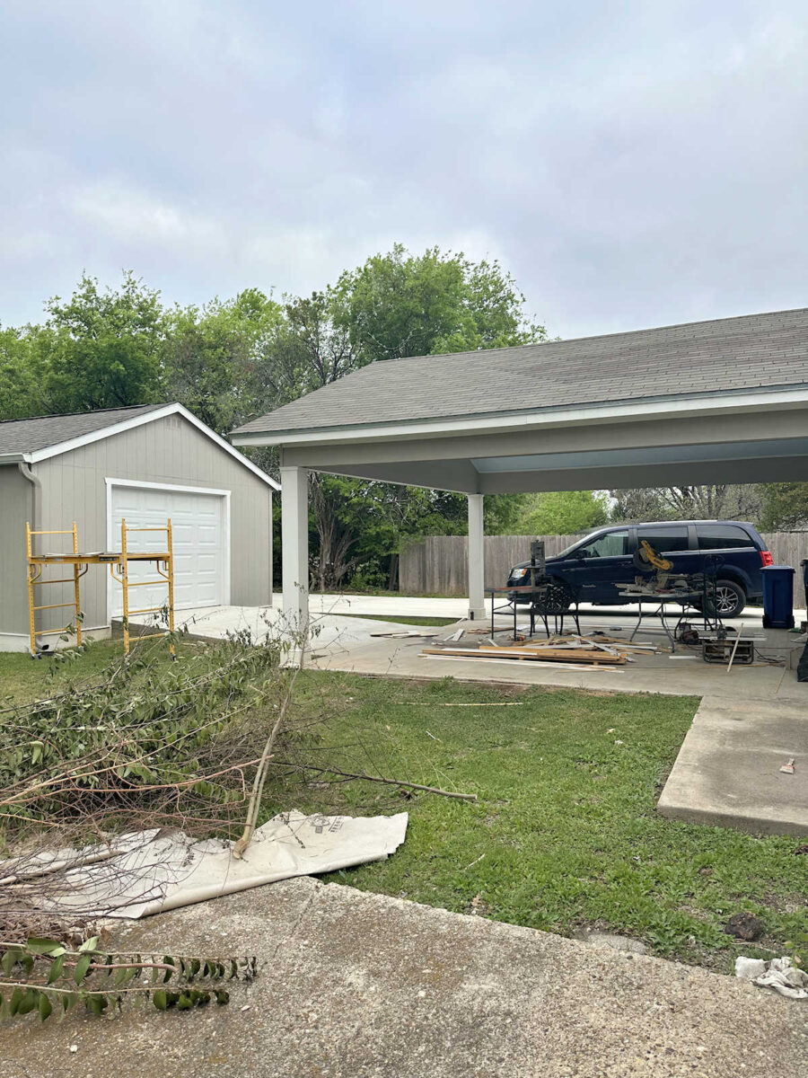 We used to have a huge oak tree in this area between the carport and the patio…