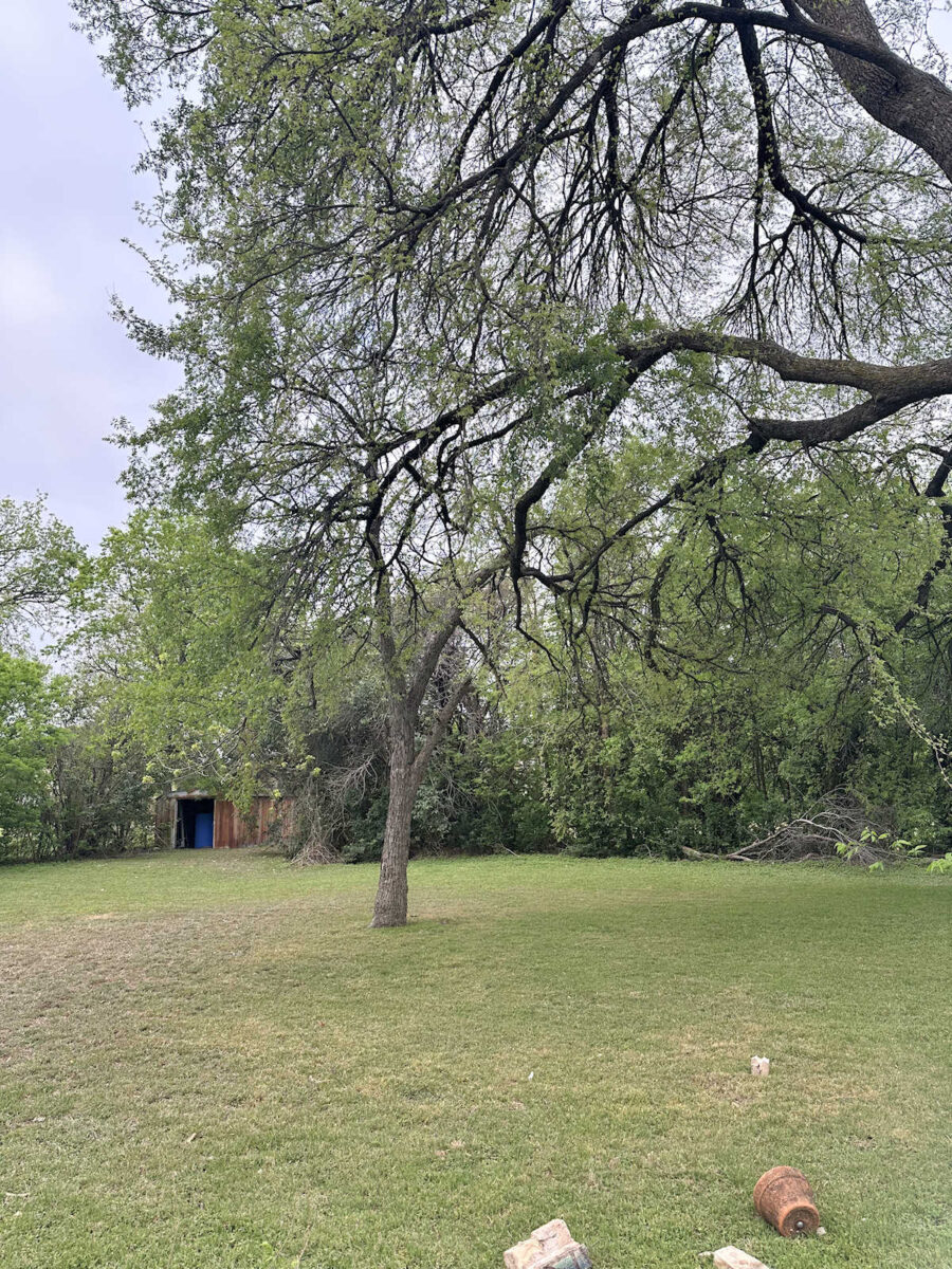 Just beyond that dying oak is a dying pecan tree. At least, I think it’s a pecan tree. (Keep in mind that I know absolutely nothing about plants and trees, so I have to rely on what others tells me.) This thing has been in bad shape since we’ve been here, but it’s gotten progressively worse over the years.