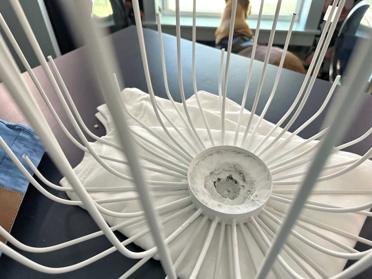 The last time I showed y’all the progress, I had finished the base with all of the “stems” and had painted everything white.