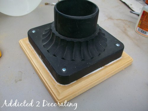 I didn’t have screws the right size to fit the holes in the metal piece, so I used some glue that I had on hand to attach the metal piece to the wood.