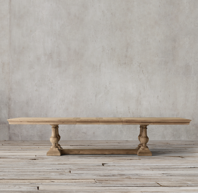 I been following your blog for some time now, I feel that the table and base in pic 1 from ECustom is more you, just maybe all in the same color though. Could you make those dual pedestals and put them on your farmhouse style table? It already has the extension you want. Also, just a FYI…..I chose our current dining table because of the base, which I absolutely love, but nobody seems to see the base, nobody has ever commented on the base, all everyone sees are the dining chairs!!