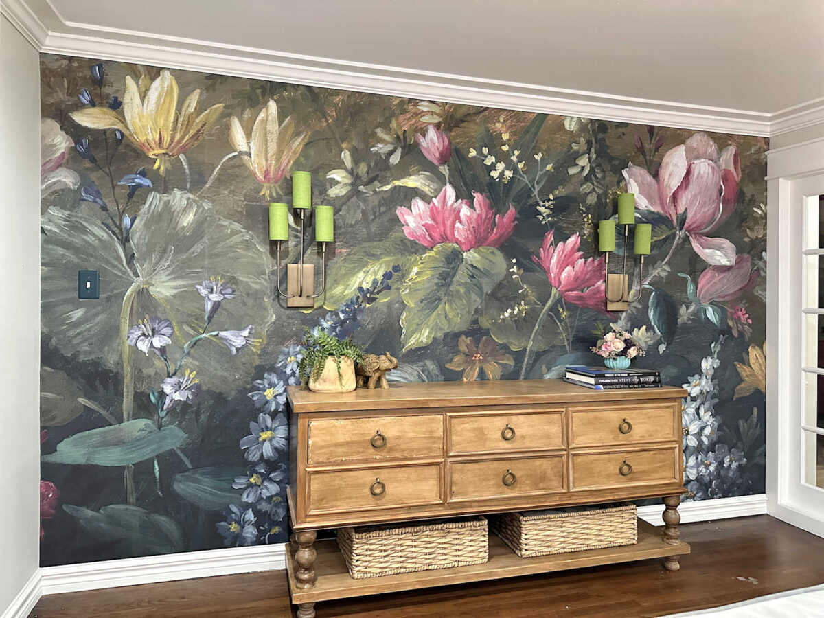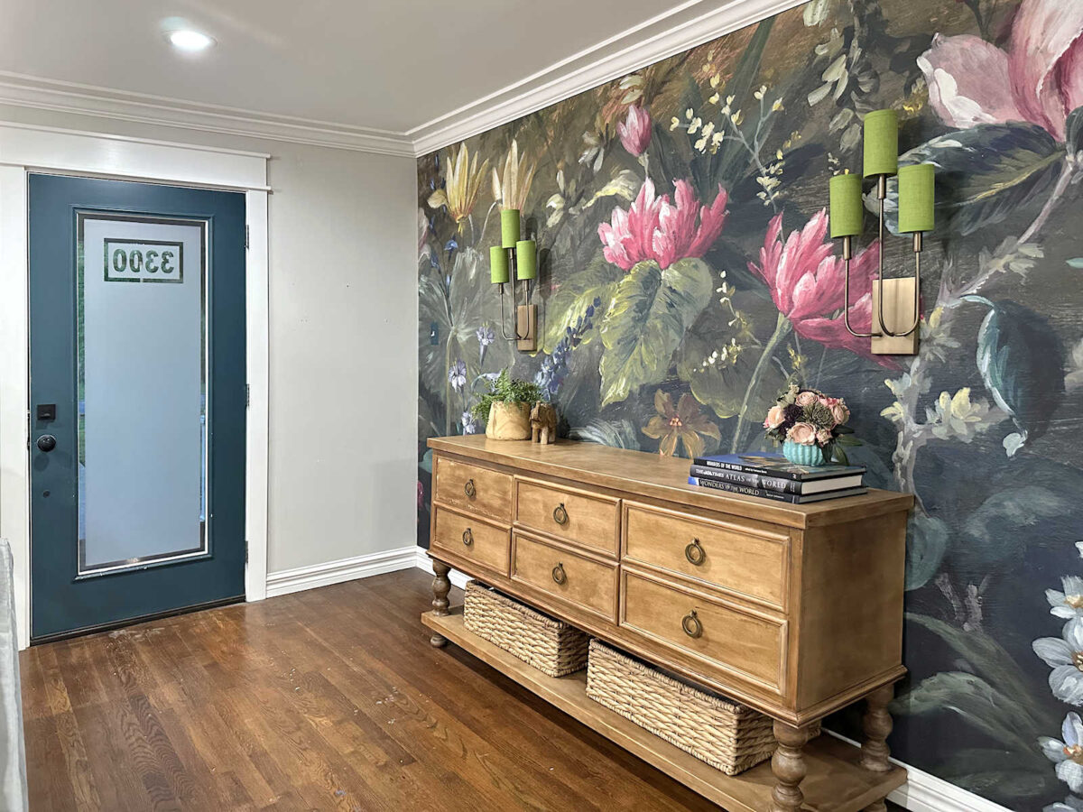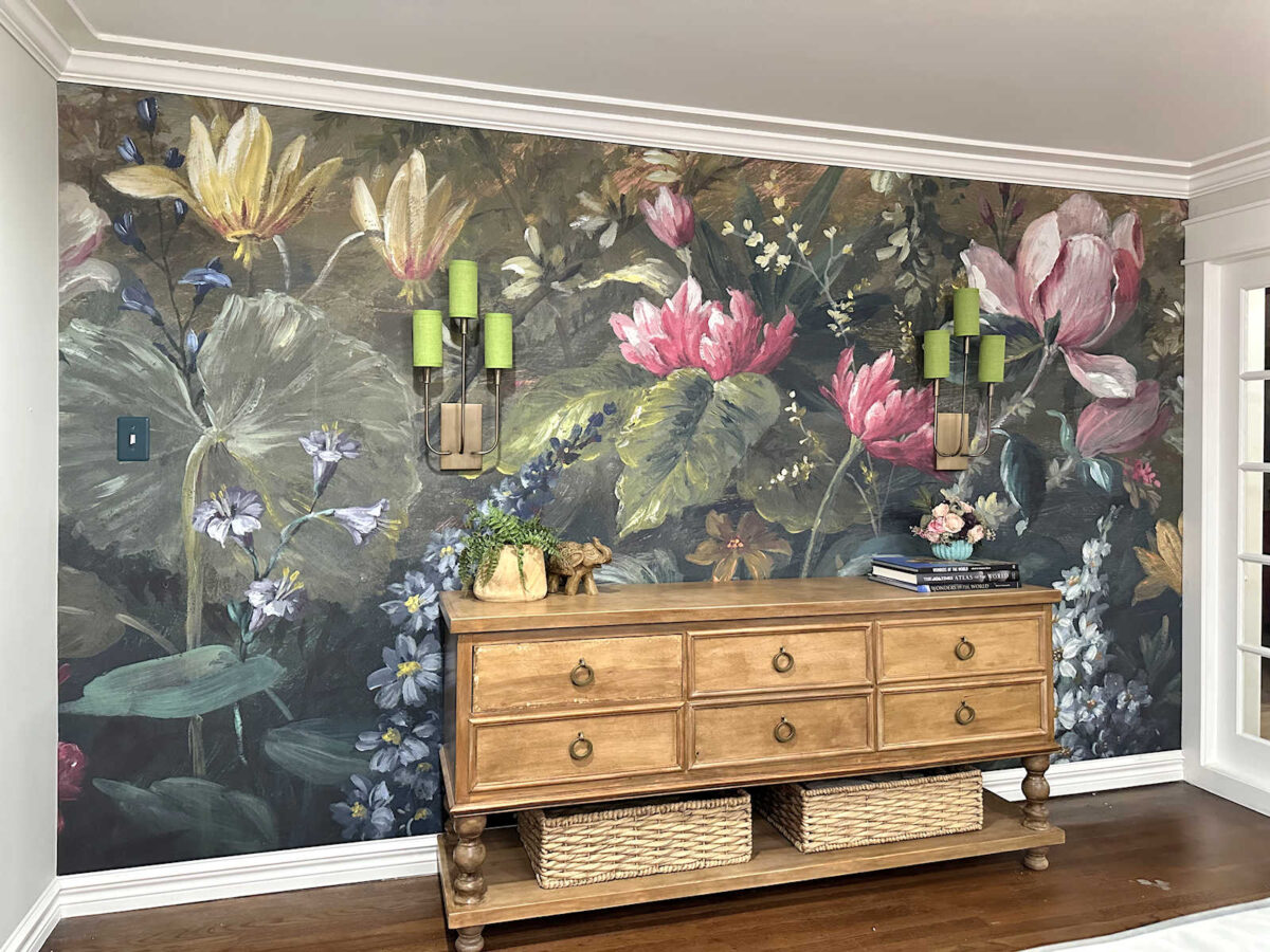 Entryway Progress — The Floral Wallpaper Mural Is Up!