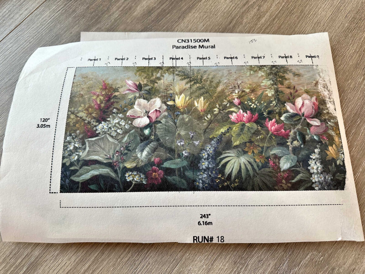 This mural is so easy to install. The paper is thick and the design is pretty busy so it’s very forgiving. And the design from panel to panel matches up perfectly.