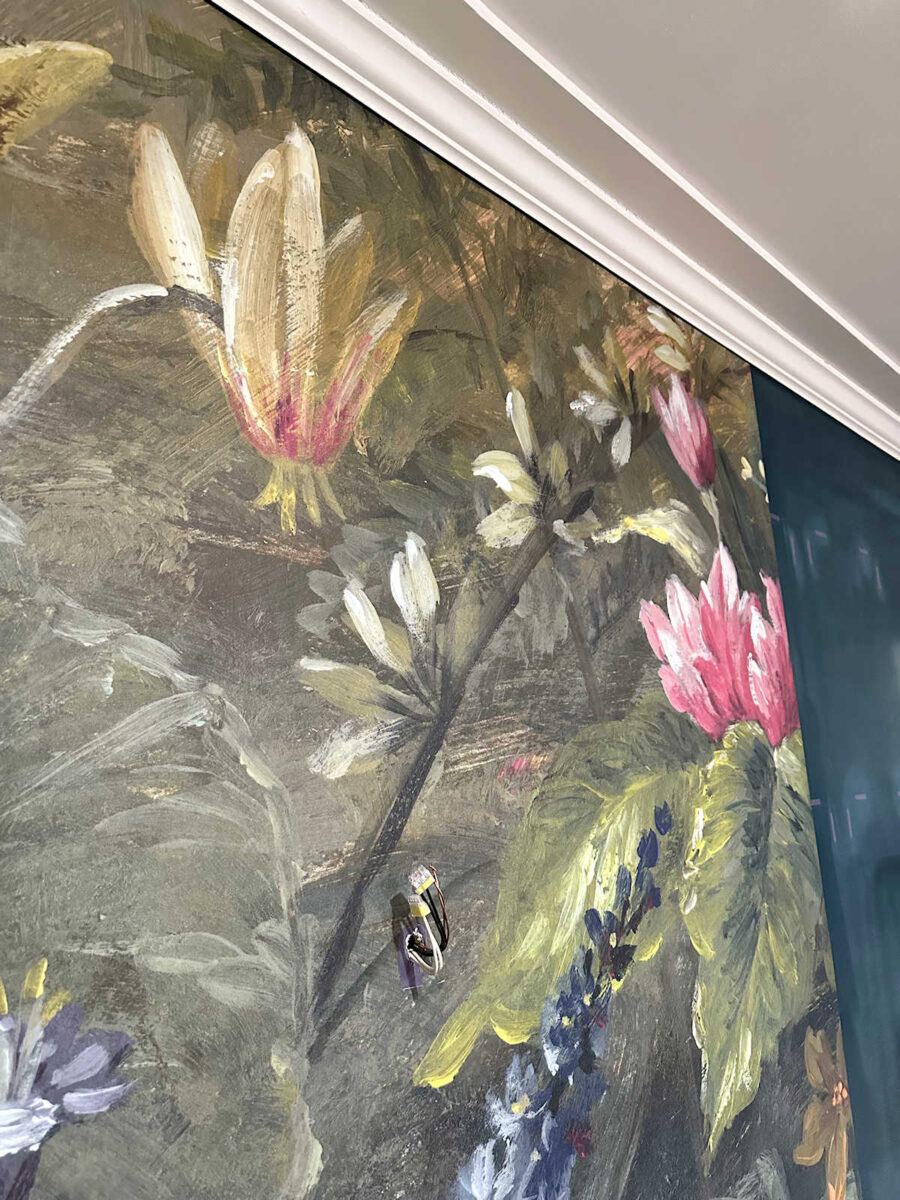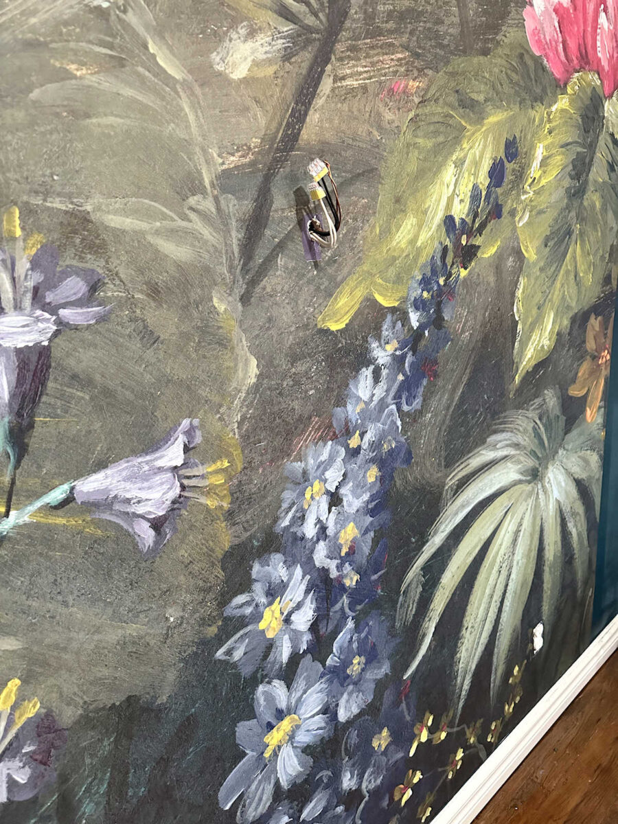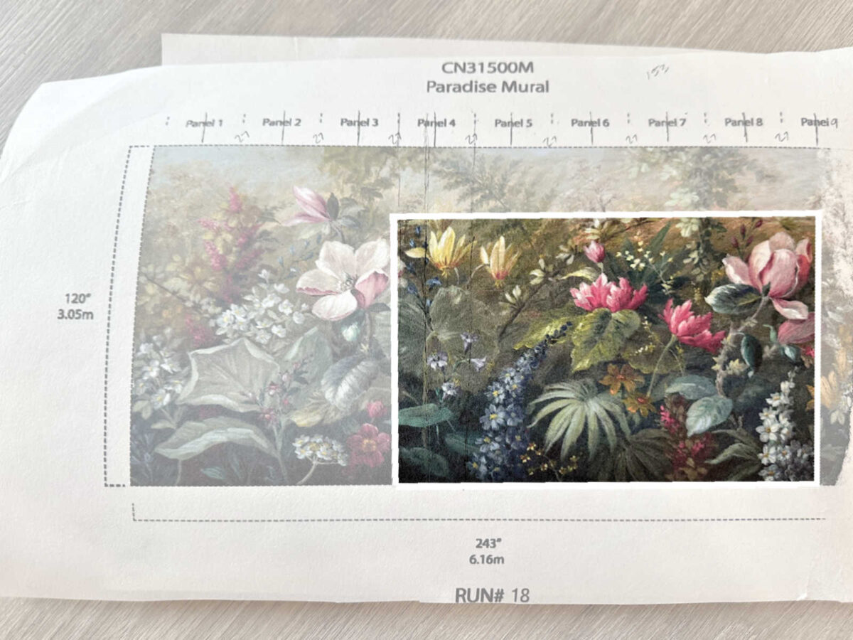This is going to be stunning. I don’t know if you will decide that your console covers too much but I do think the natural wood tone will look great with the floral rather than paint. Can’t wait to see the finished wall.