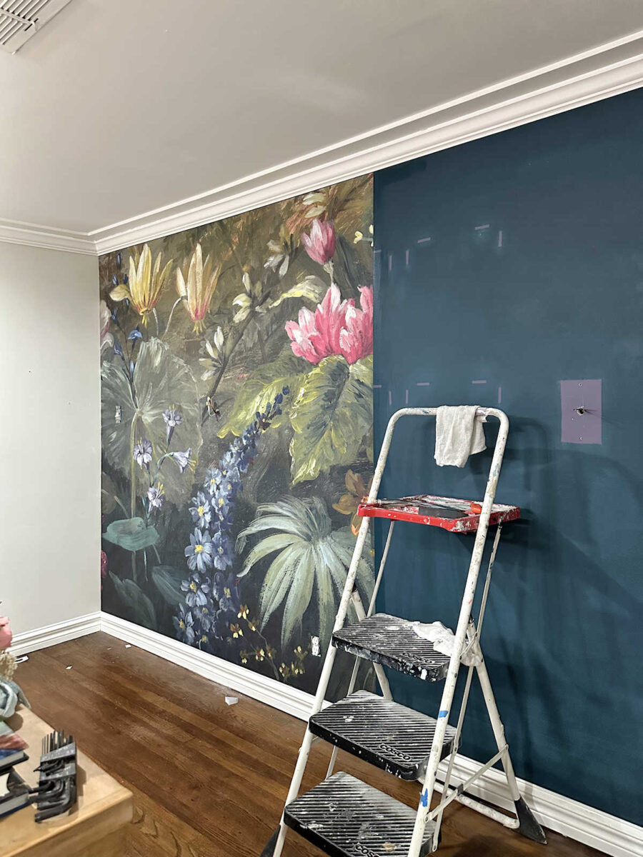 A while back, I purchased this wallpaper mural from Anthropologie during a sale, and I’ve been holding onto it until I decided where to put it. The mural is really large — 20′ wide and 12′ tall. And after all of my other options fell through over the last year or so, I finally decided to use it on the entryway wall.