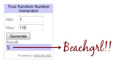 Congrats, Beachgrl!! Just shoot me an e-mail at addicted2decorating[at}live.com and we’ll get you all set up.
