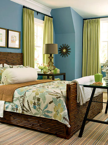 It has very bold walls and draperies, and yet it doesn’t look busy or overbearing.