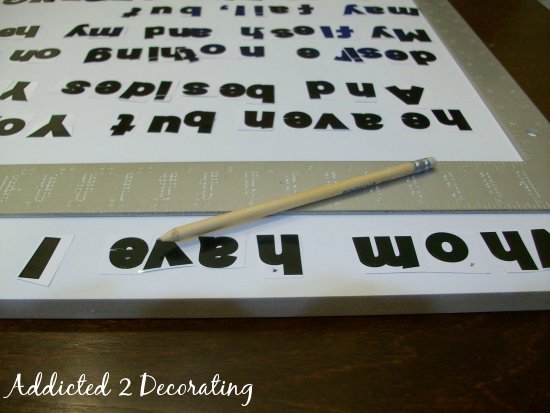 Then I began applying the stickers to the MDF, using the pencil lines as guides.