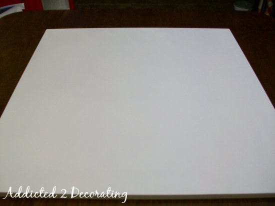 I started with a scrap piece of MDF about 23 inches square, and I primed (with spray primer) and spray painted it.