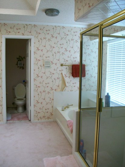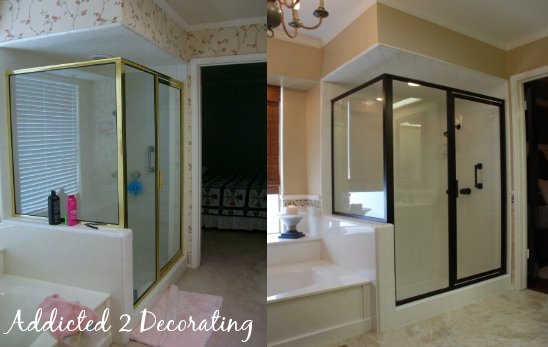 4. PAINT those faucets and shower surrounds!! Talk about saving money!! If you have one of those cultured marble tubs, there’s simply no easy or inexpensive way to change the faucet. If they’ll even touch the thing, plumbers will charge an arm and a leg for their services. And even then, you might still have to call someone else to reset the marble after the plumber has done his work. Talk about expensive!!! And that’s in addition to the cost of the actual faucet. And then there’s the shower surround. And oil-rubbed bronze shower surround costs several hundred dollars, and that doesn’t even include the price of removing the old surround and installing the new one.