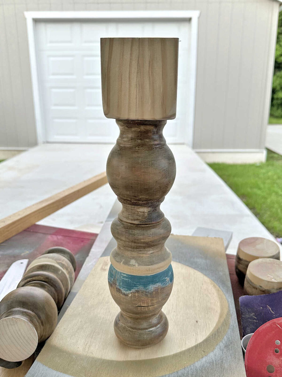After getting all of that sorted out, I did some work on the console table again. I know y’all are probably getting pretty tired of hearing about this console table. 😀 I’m tired of talking about it, but I’m having fun working on it. And I think I found a workaround that will let me use the turned wood legs.