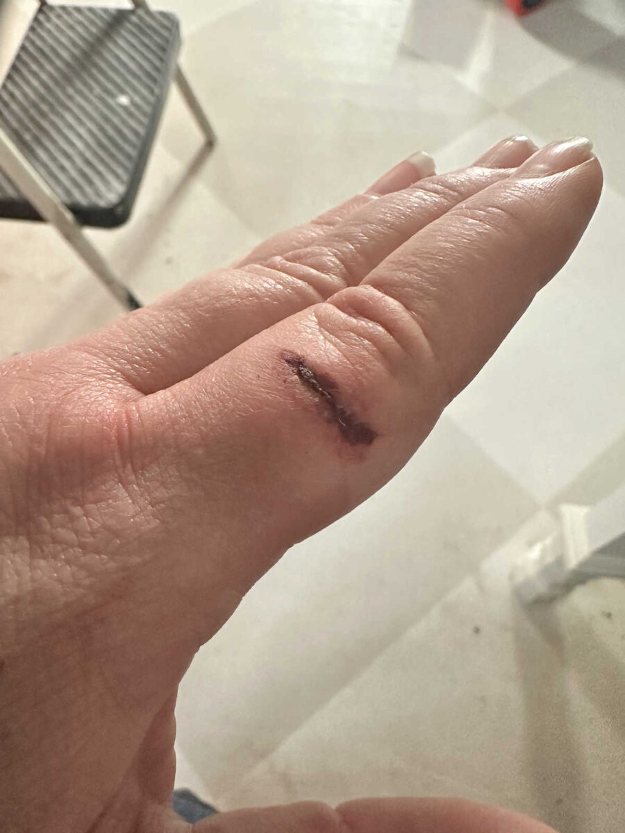 I did have a bit of an accident. I’m not used to using hand tools. I’m a power tool kind of gal, so the saw got away from me and sliced my finger.