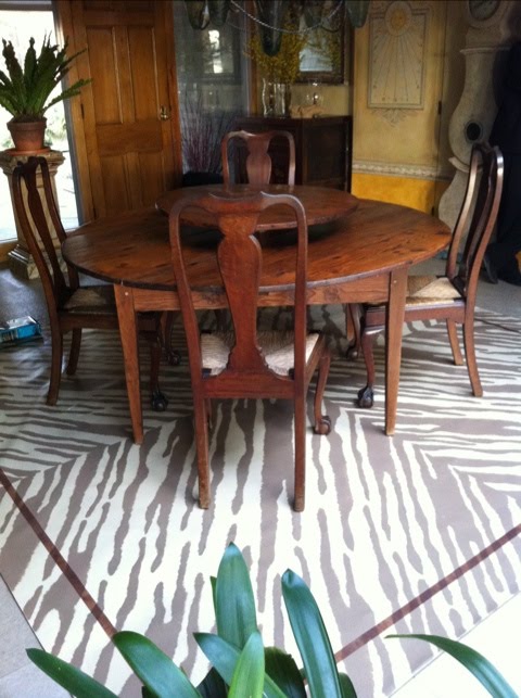 I’m on the lookout for hand-painted floor cloth inspiration, and this one is pretty incredible!!