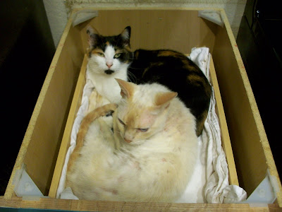 those countertops will look amazing. Is that a flame point siamese kitty? they are both pretty(or handsome).