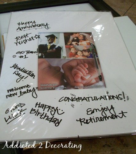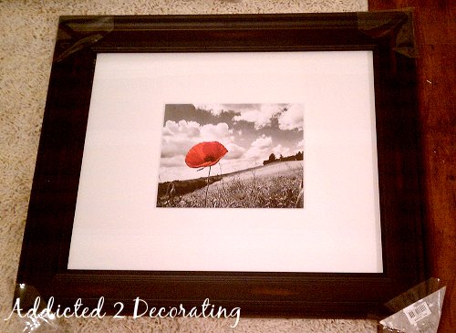 Another idea, though, is that you can use a series of six or nine (or however many) photos to fill a large space. That might end up costing more, though, because you have to purchase that many mats and frames, and those add up!!