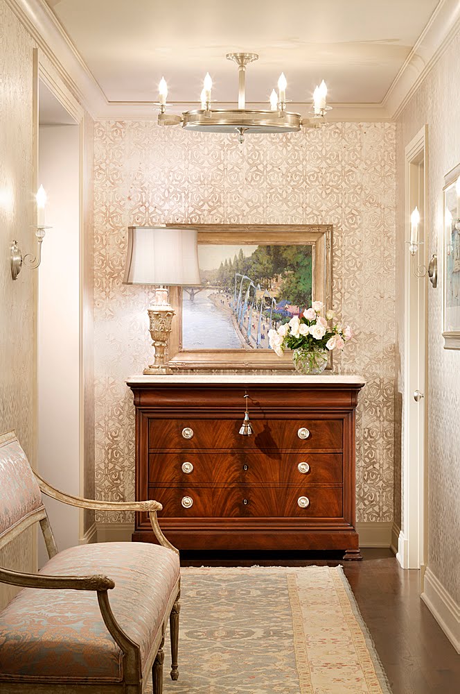 | What a beautiful (entry?) hall. Love the wallpaper!! |