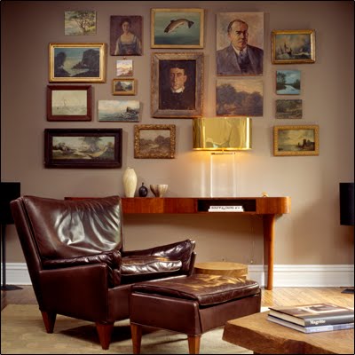 | I really like this art wall. It seems perfectly imperfect in its arrangement. |