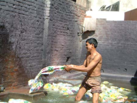 Next, the printed fabrics are washed and beaten to ensure that all of the fixing agents are removed.