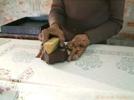 Saffron Marigold sells exquisite block-print textiles, such as duvet covers, tablecloths, table runners, pillow covers, cushion covers, curtains, and shower curtains. I hadn’t heard of this company until about two weeks ago, so naturally I was curious to see what they had to offer. But as I perused their website, I was not only amazed at their beautiful products, but I was absolutely captivated by the process in which these products are made.