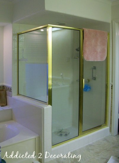 The shower enclosure looks great! We also have the same gold fixtures in our master bath, and I have been considering painting them as well. Did you just use spray paint, or did you rent a sprayer and use a special paint to adhere to the metal? This is my new inspiration to bring my bathroom up to date!