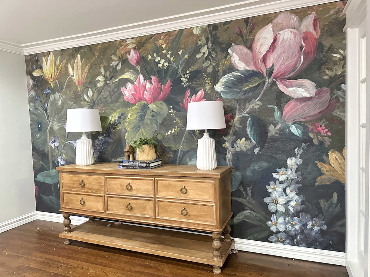 I think you have a happy accident! For me, the lighter brighter pink pulled attention away from the gorgeous wallpaper. The darker version tends to just play nicely with the wallpaper w/o making the lamps the star of the show. Well done!
