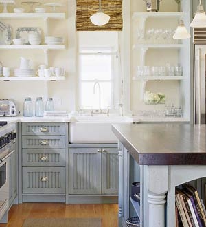 As you know, I’m on the hunt for the perfect shade of gray for J & A’s lower kitchen cabinets, so I thought I’d get a little inspiration from others who have used gray in their kitchen. It’s really amazing to me how versatile gray is. I found it used in everything from rustic country kitchens to the most contemporary kitchens.