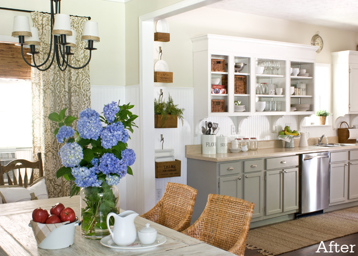 We did grey in our last house. But on the walls with white cabinets. In this house I have shades of gold and a dirty green…been thinking of making a change. I like the idea of going back to grey–but on the cabinets instead of the walls.