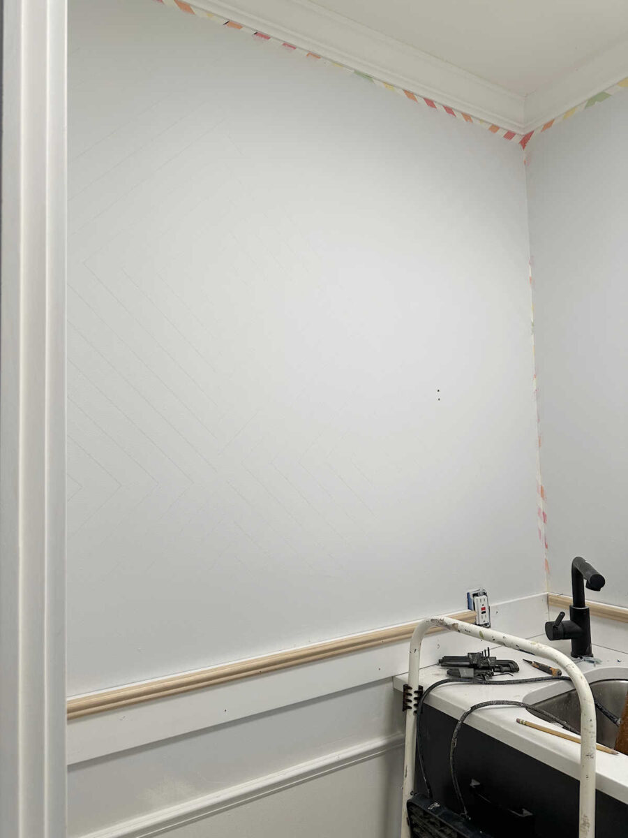 Anyway, I’m right on the cusp of being able to add the wallpaper, but these walls have given me more trouble than I thought they would. One issue is that the black Sharpie marker that I tested out to outline that original square spiral design keeps bleeding through the primer.