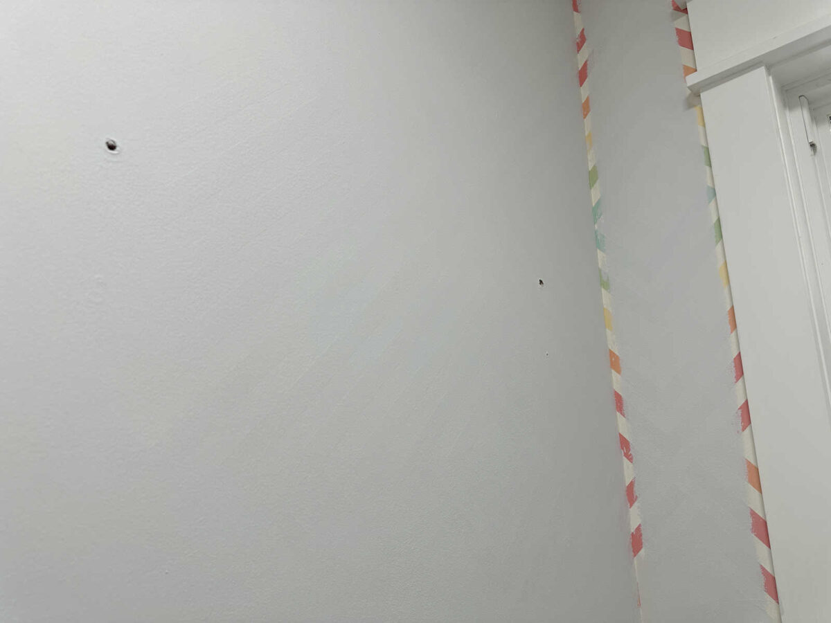 In hindsight, I wish I would have just used the shellac-based primer from the start. These walls already have two coats of water-based primer, and the design is still showing through. And the part with the Sharpie marker has three coats, and that’s still bleeding through. This would have been done by now had I just used shellac-based primer from the start.