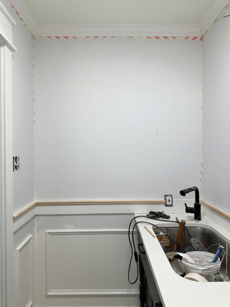 But this time, I wanted the top portion of the wainscoting to be shorter, but I didn’t quite think through this area when I made that decision. So now I’ve created a challenge for myself. I’m not worried about it. I’ll come up with something. I just need a bit more time to think it through.