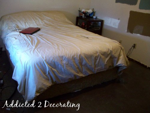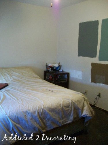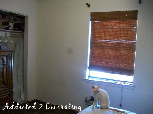 So there it is…my pathetic bedroom. I’d love to go hide my head in shame right now, but there’s no time for that. I’m actually going to take one more day today to work on it, so check back tomorrow for my progress!