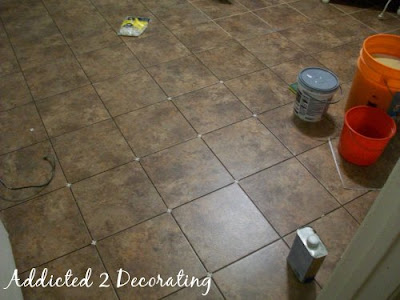 But anyway, I finally got all set up with the flooring and supplies I needed to get started, and I really must say…I LOVE this flooring. I started in the office, because it will soon be used as a guest bedroom, and it really needed some attention. I got all of the tile put down, and about half of it grouted. The process really couldn’t have been easier, and I love that it can be cut with a utility knife. No tile saw needed!!