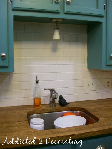 I created more work for myself a few weeks back when I decided to refinish my countertops. I’ve only finished the sink side, so the stove side still needs to be done. I can’t wait to get rid of all of that redish orange stain.