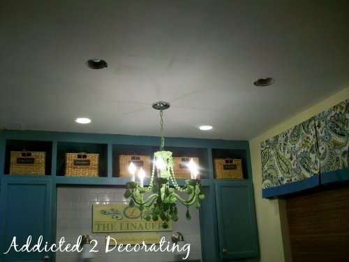 Two of my halogen light bulbs burned out this past week. Bummer. Those need to be replaced, and I need to finally purchase trim kits for these recessed lights. I also need to install crown moulding all around the room.
