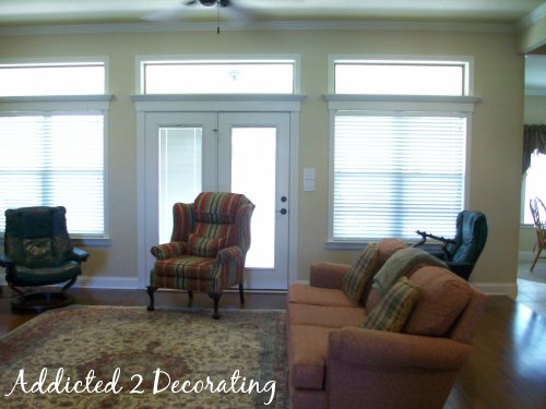 I love Laurie Moss' idea! As I was looking at the first pictures I kept wondering why you didn't put any shade/covering over the little windows above the large windows.