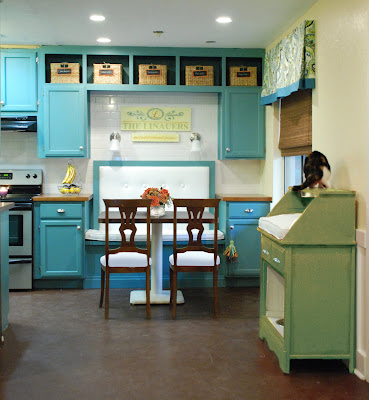 Seriously,love the first green & white. I like the orange on the table, too–just right!