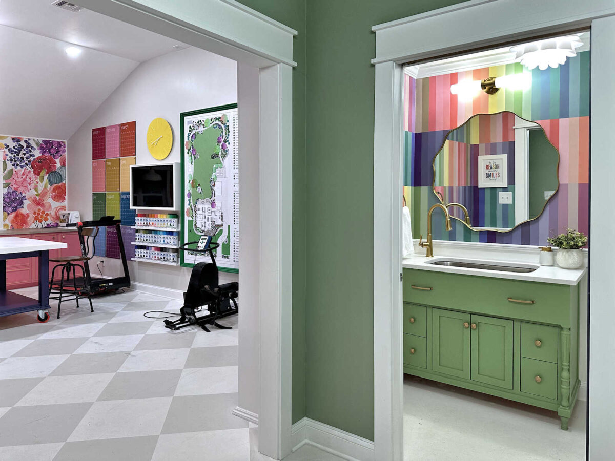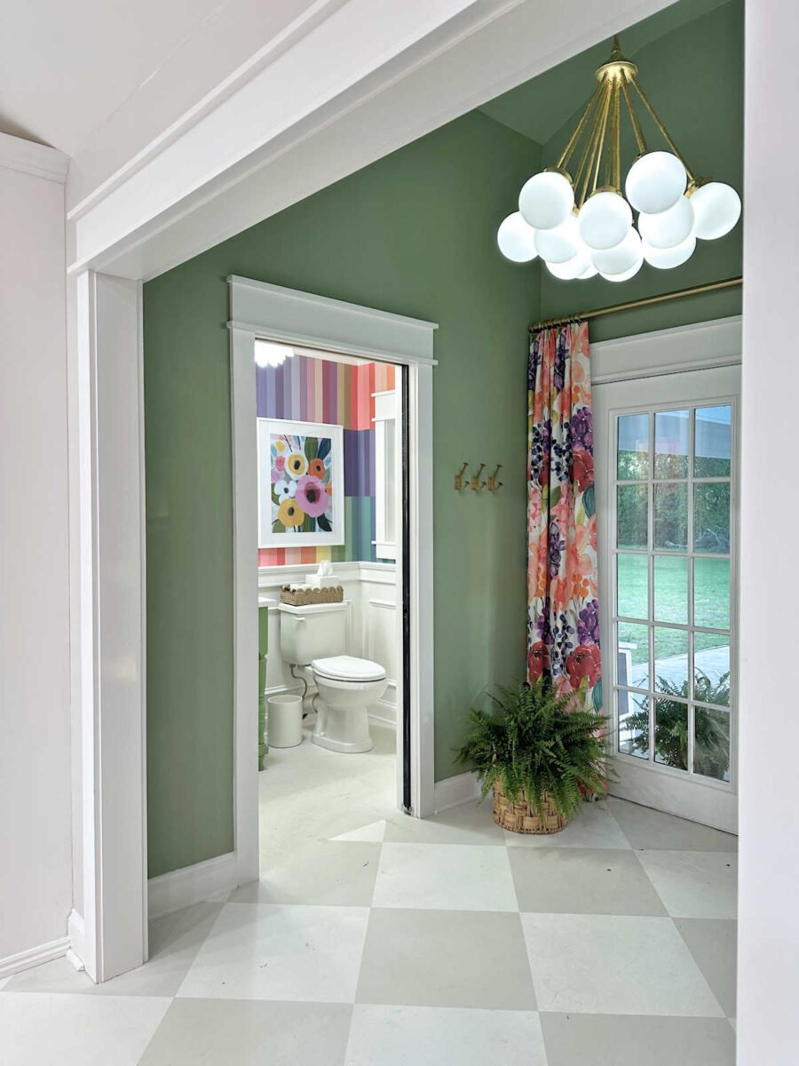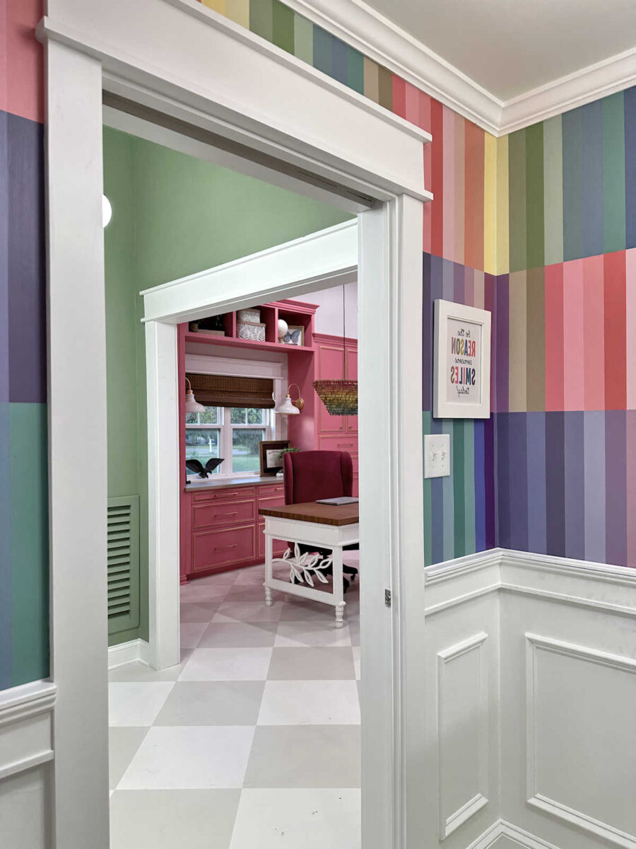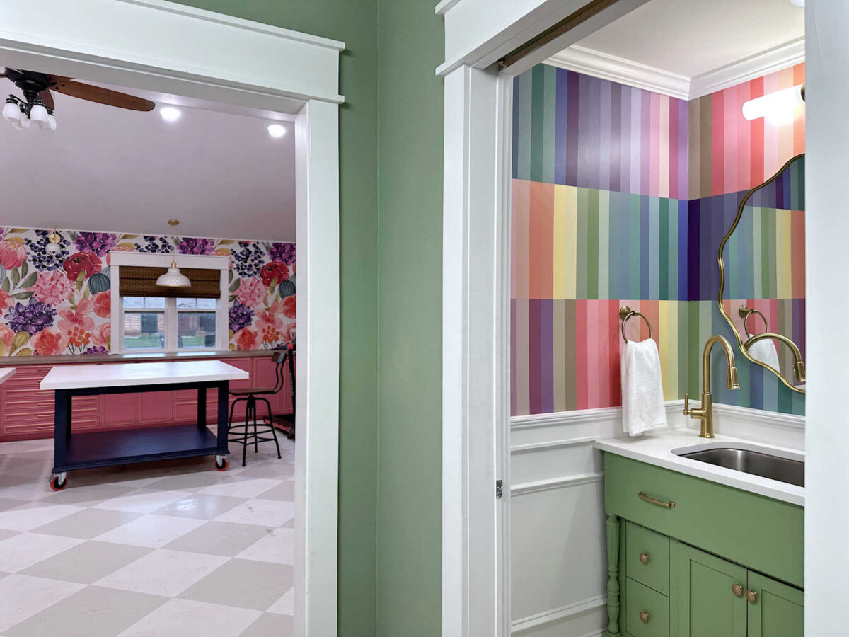 I don’t really have a lot of commentary to add to these photos except to say that I absolutely love sitting at my desk each morning and seeing the whole view of every color-filled wall of this room. Y’all know how much I love color, so starting my day being surrounded by this much color and pattern makes for the perfect start of each day for me. And now that the bathroom is finished, and I can see a glimpse into that room from my desk as well, it’s like another treat for my color-loving eyes when I sit at my desk and look around the room.
